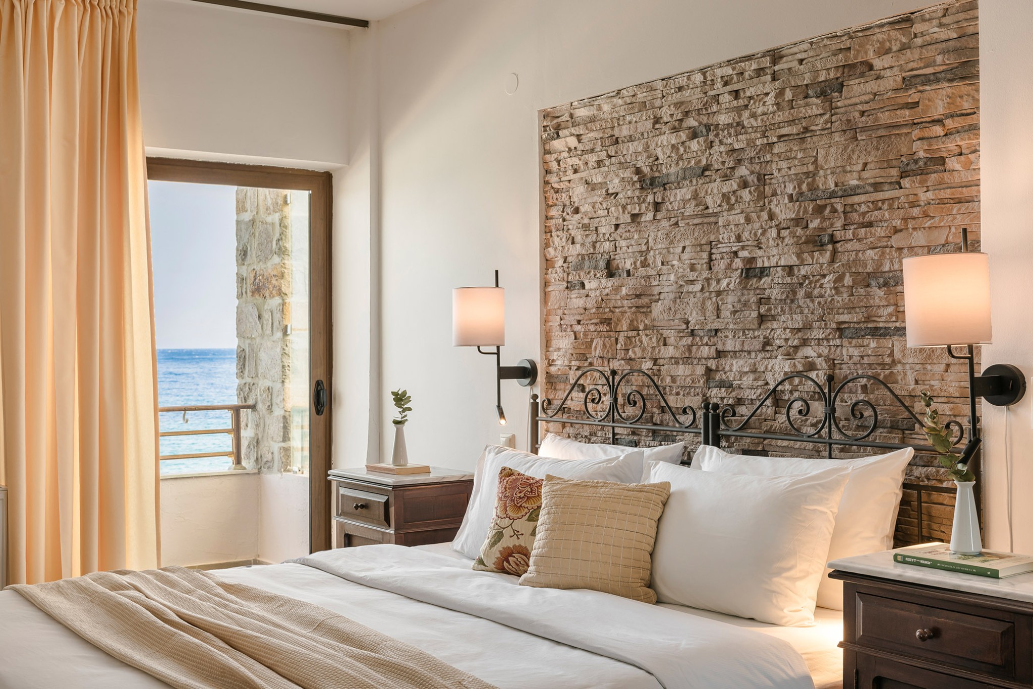 A beautifully furnished sitting area on your private balcony will become your favorite hangout throughout your trip as it offers an exquisite view to the azure waters of the Aegean Sea. Opt for this Deluxe double room and let it enchant you with its incredible sea view.